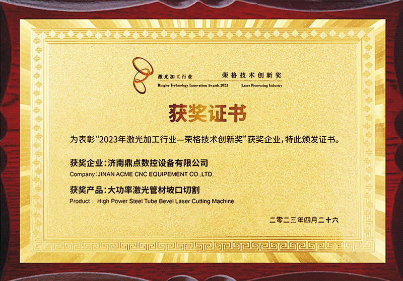 公司堅持研發(fā)立企、創(chuàng)新興企。公司自主研發(fā)的“大功率激光管材坡口切割技術(shù)”打破國外行業(yè)壟斷,讓國內(nèi)普通激光切割頭也能實(shí)現(xiàn)±45°坡口切割,入圍山東省創(chuàng)新能力提升工程項目并獲2023年激光加工行業(yè)“榮格技術(shù)創(chuàng)新獎”。是“大功率激光管材坡口切割關(guān)鍵技術(shù)”濟(jì)南市工程研究中心,濟(jì)南市“一企一技術(shù)”研發(fā)平臺,已取得授權(quán)知識產(chǎn)權(quán)120項。