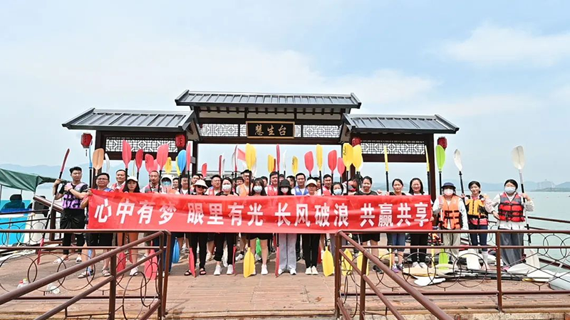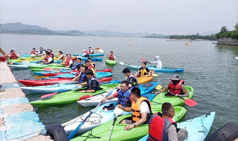 來到雪野湖的第一個游玩項目是“水上皮劃艇”,劃一艘小艇劈波斬浪,享受美麗的自然風光,大家都對于這個項目十分感興趣,興致勃勃地想要挑戰自己。很多同事都勇敢的突破自己, 體驗了一把“水上行走”,這種敢為人先,勇于突破的精神也正是鼎點企業一直秉持的信念。