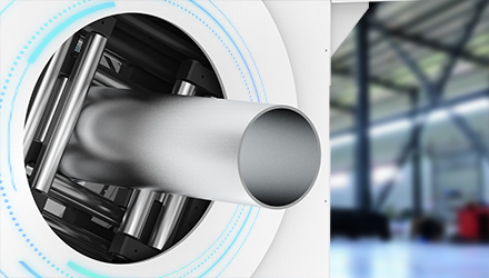 重型全行程氣動卡盤,無需更換卡爪;八缸夾持,夾持力是普通卡盤的 兩倍;三款側掛式重型卡盤,運行更穩(wěn)定 聯(lián)合多組全行程伺服支撐,對重管進行多方位托舉 承重力強;包容性強,可批量加工16-520mm的管材