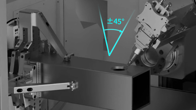 激光頭切割噴嘴位于旋轉中心,切割精度更高。不需要管材來回送料,防止薄壁管材在反復拉料夾持時出現(xiàn)形變,小管坡口切割精度更高。